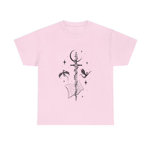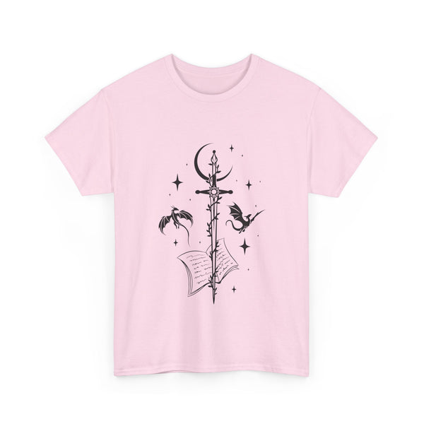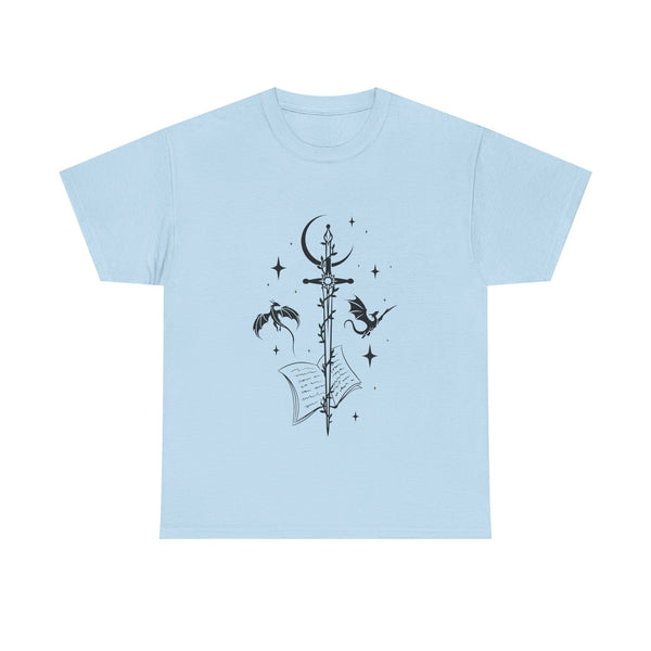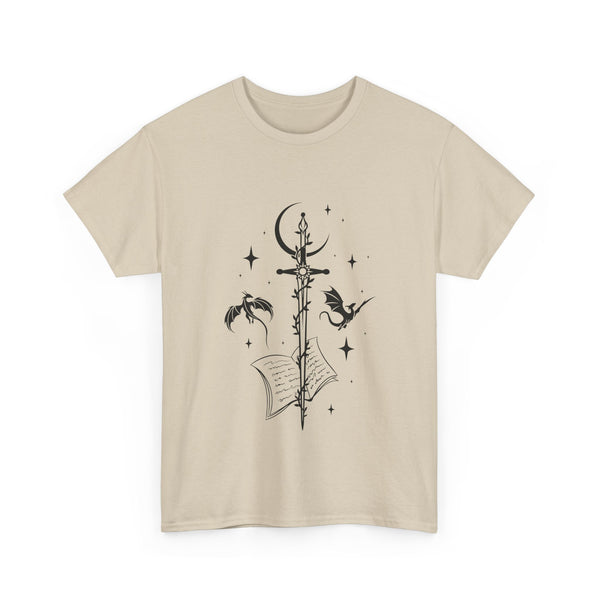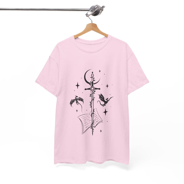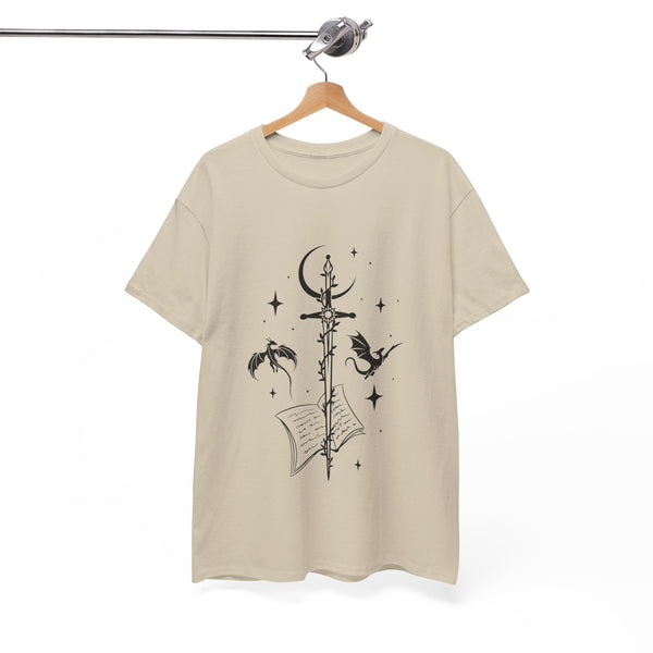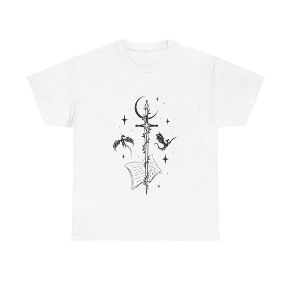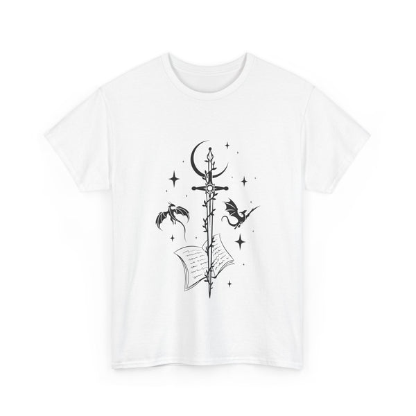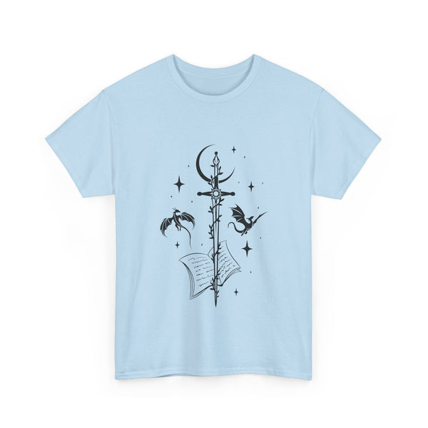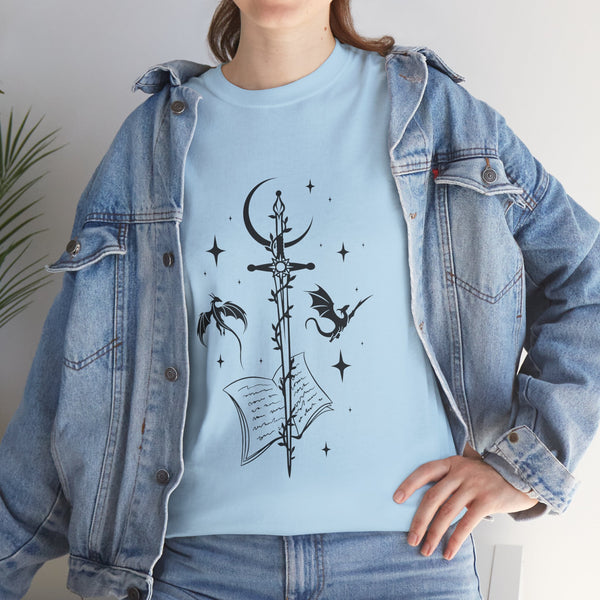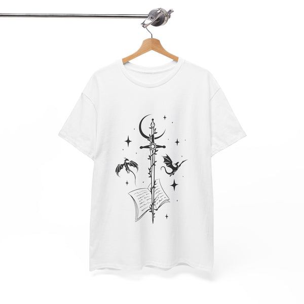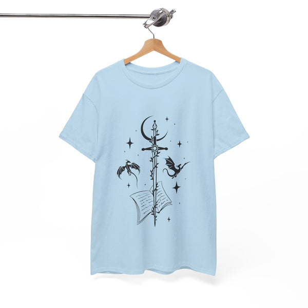 This captivating design features a majestic sword at its centre, intricately entwined with fierce dragons. Crafted from premium, ultra-soft materials, this shirt offers both comfort and durability, making it perfect for everyday wear or for showcasing at your next fantasy convention. The classic fit ensures it looks good on all body types, and the print remains vivid and eye-catching wash after wash.